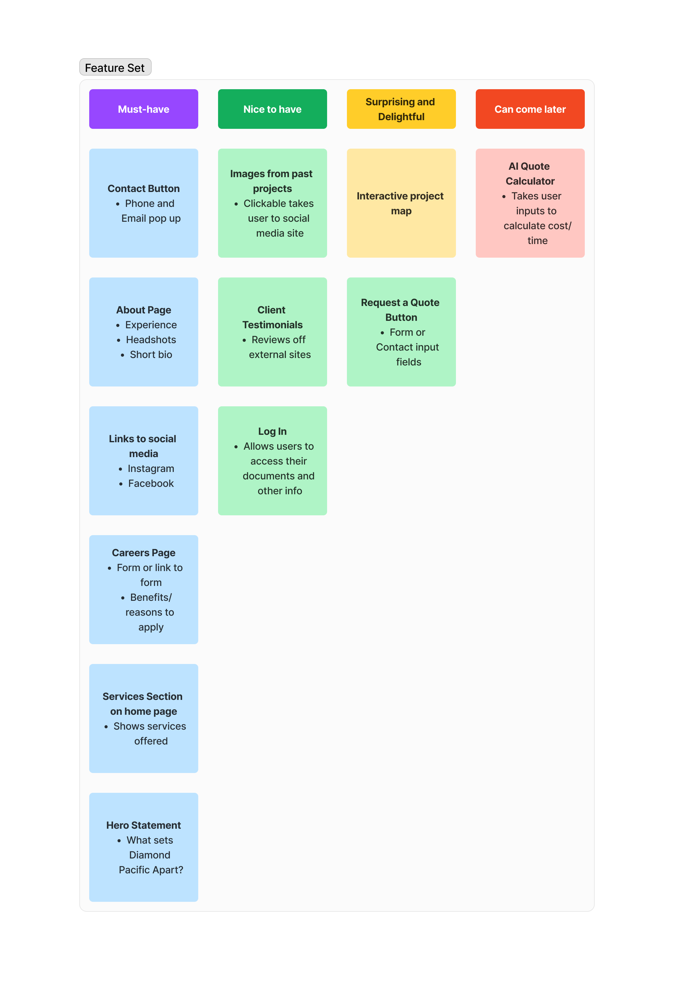 From this competitor analysis, I was able to find both important features (such as quote requests, contact pages, and service descriptions) and weak points to capitalize on to make Diamond Pacific stand out.