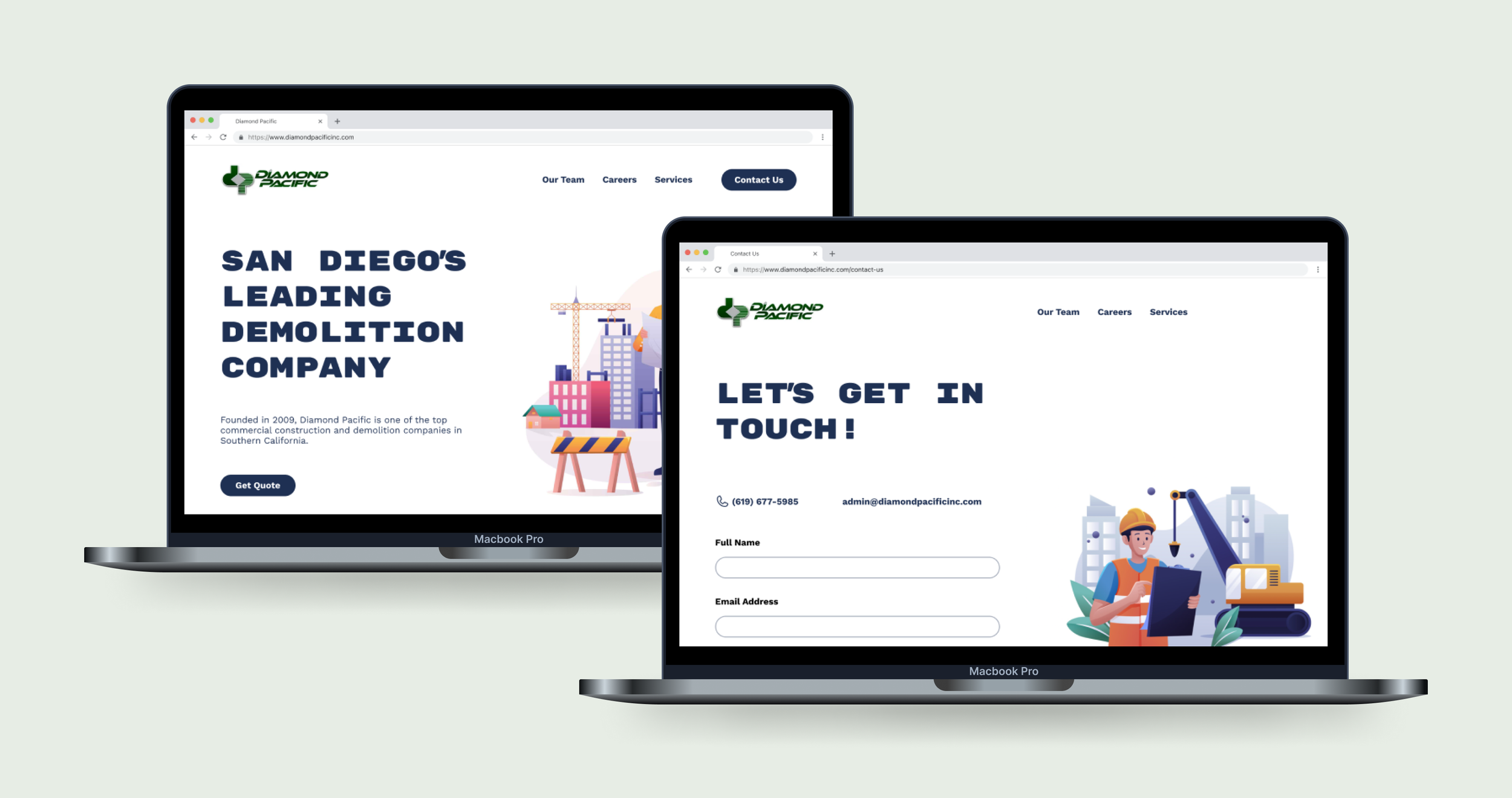 Diamond Pacific has seen significant growth in recent years, and has been contracted to complete large-scale, expensive projects with both private and government parties. However, their existing website was not up to par with their reputation, and needed some significant repairs and and modernized redesign.