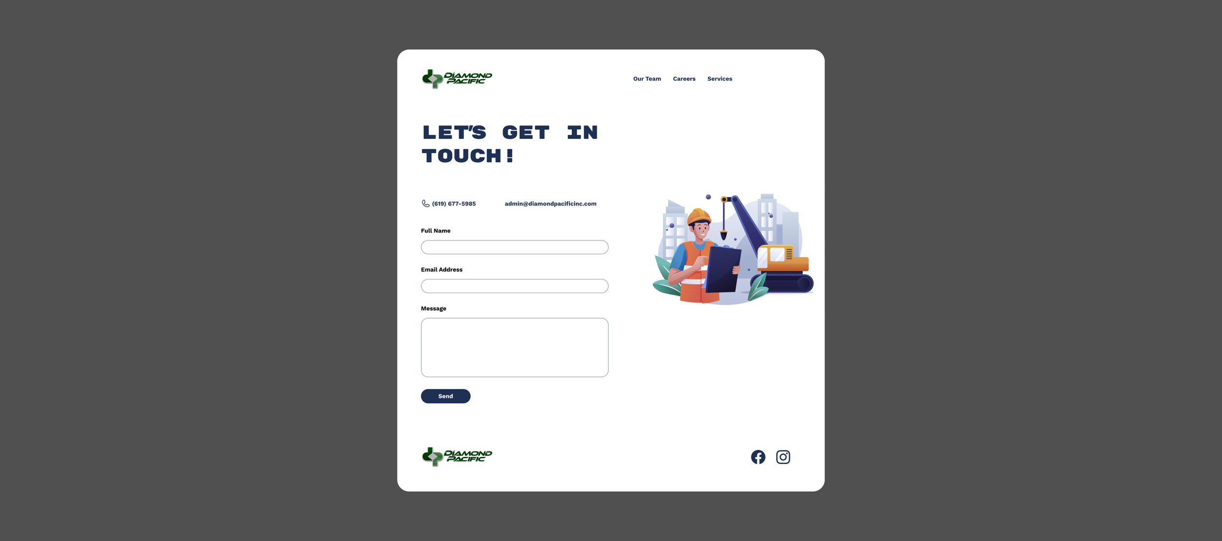One of the most important features indicated by users during the research phase was the ability to contact companies they are thinking about hiring. Diamond Pacific’s existing website didn’t prioritize this enough, so I made sure to isolate an easy-to-find, user-friendly contact page.