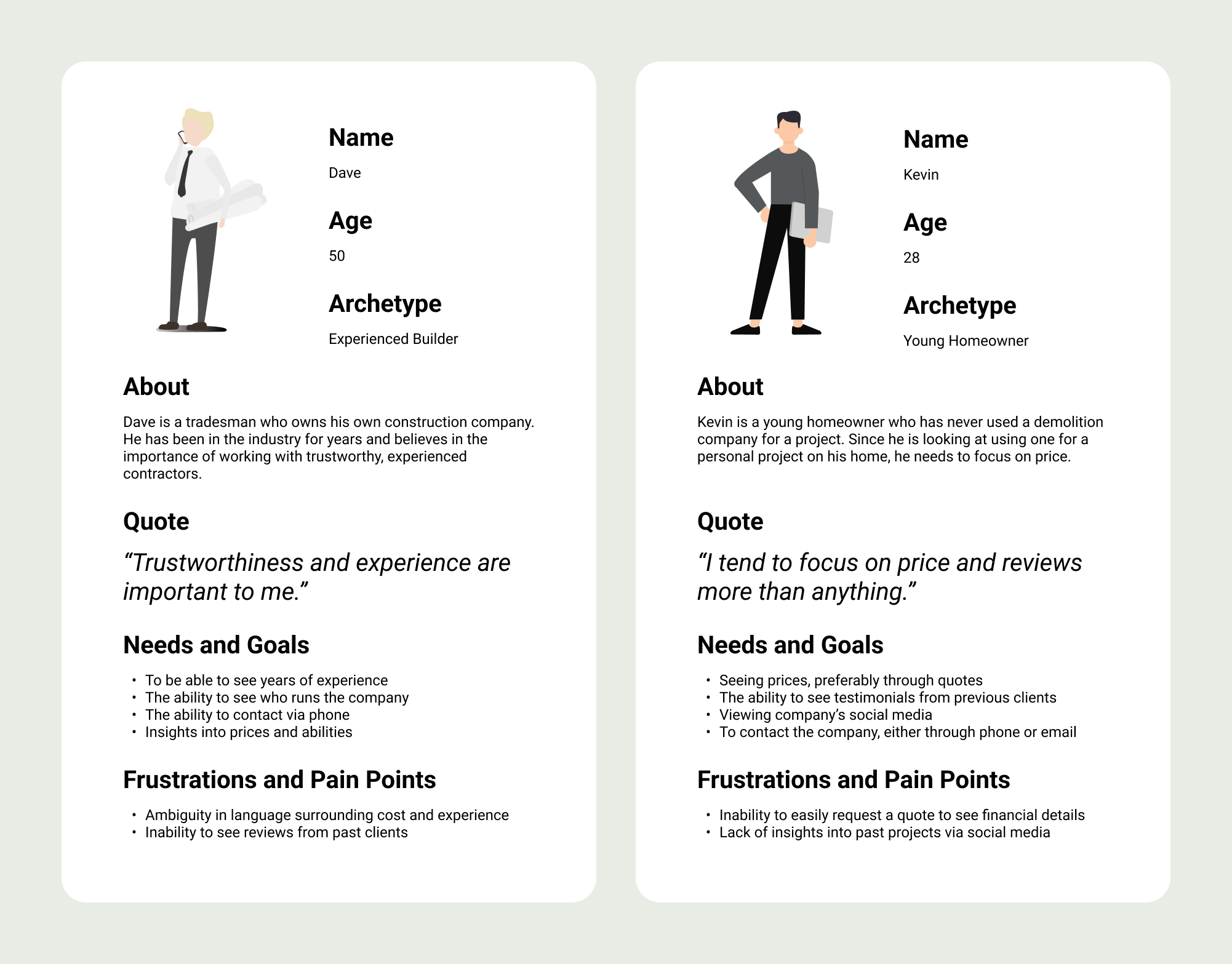 With the information and insights offered by looking at competitors and interviewing users, it was now time to create two user personas to better understand my target audience.