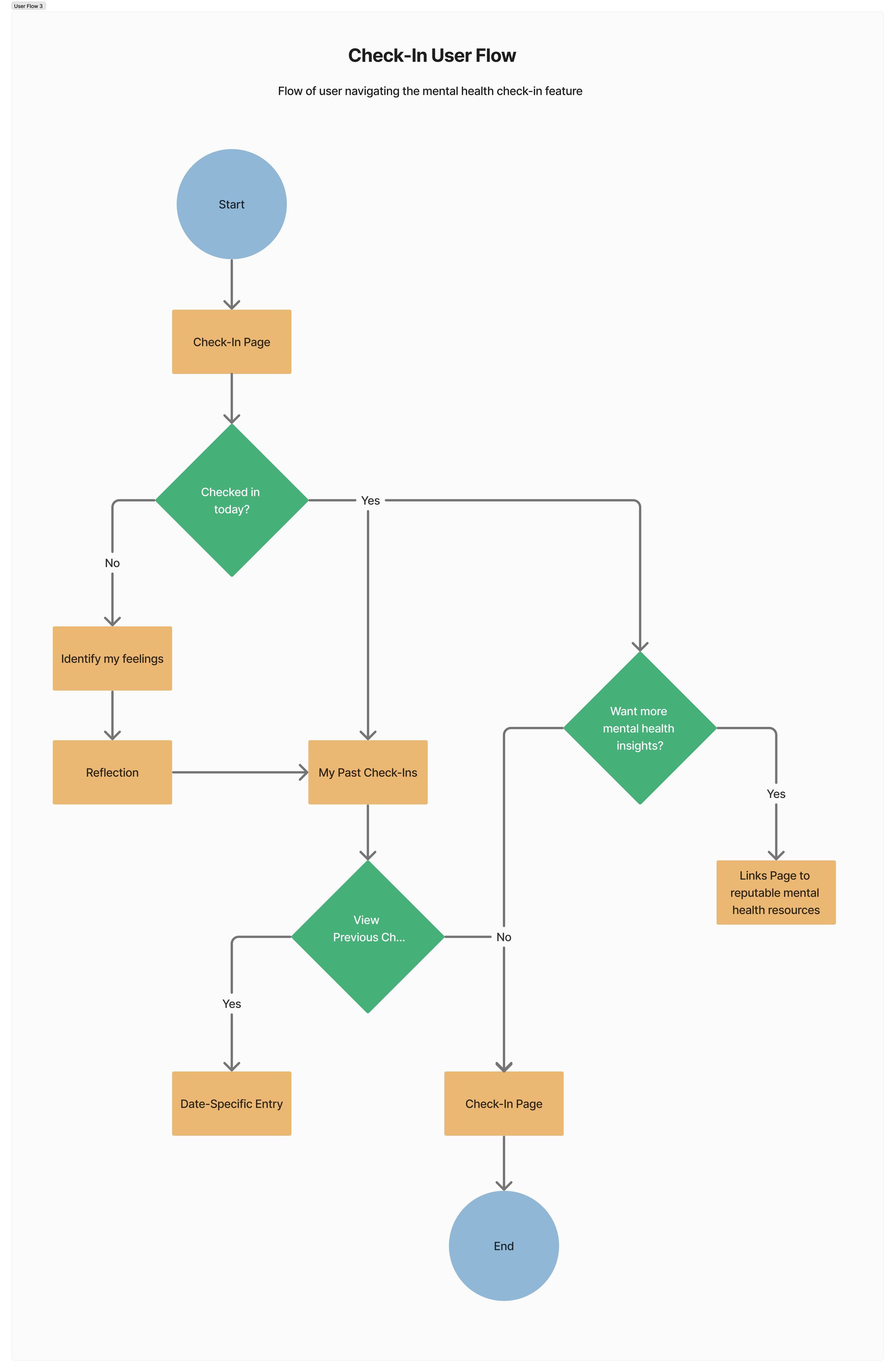 In order to conceptualize how these solutions would look as far as key screens, tasks, and overall user experience, I crafted two user flows. Specifically, a check-in user flow and a checklist user flow: