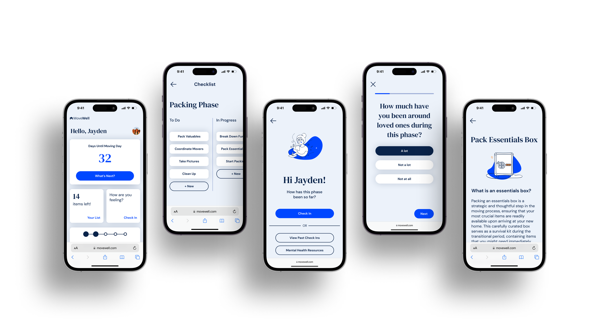 My goal with MoveWell was to design a product which would help make moving a bit less difficult. Through mental health check-ins and comprehensive, easy to follow checklists, MoveWell is a product that accomplishes that goal.